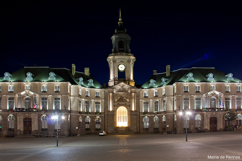 Maggy nous a transmis ses photos et nous montre l’hôtel de ville de Rennes durant la nuit, le théatre pendant la même nuit, le parlement de Bretagne.
