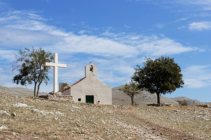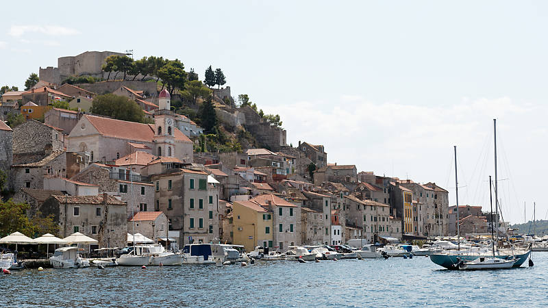Daniel a pris des photos de Croatie : Šibenik, une voiture (une coccinelle) garée sur la plage. Une chapelle sur les îles Kornati. Des chutes dans le parc de Krka. Une église à Nin. Nin et l’église. Une église à Split. Une vue panoramique sur Primošten.